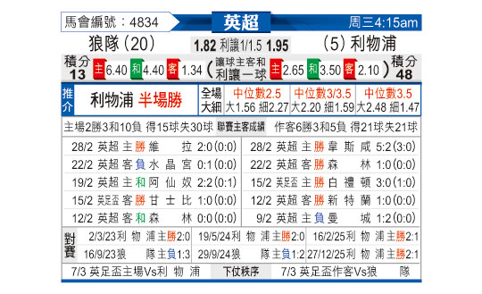 [英超] 狼队vs利物浦