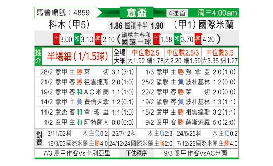 [意杯] 科莫vs国际米兰